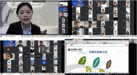 5月17日上午9:30-11:00,武永成副教授主讲的《宴会设计与管理》课程,由教研室邀请宿州国际大酒店中餐部经理桑婉秋为酒店管理专业学生进行线上讲授专题《包厢主题宴会设计与接待服务及其管理》。本次课程得到宿州国际大酒店王彬总经理、人力资源部杨静经理等领导的大力支持,由中餐部桑经理与课程主讲老师共同拟定课程的主题、授课方式、基本的框架。鉴于疫情防控的需要,本次活动采取线上腾讯会议的方式。桑婉秋经理桑经理,从事酒店餐饮业9年,现任宿州国际大酒店中餐服务经理,在安徽省餐饮服务技能大赛中多次获得优异成绩,擅长宴会接待环境和个性化服务设计、VIP接待和高档政务接待及其管理,具有丰富的中餐宴会设计、营销、管理和接待服务经验。