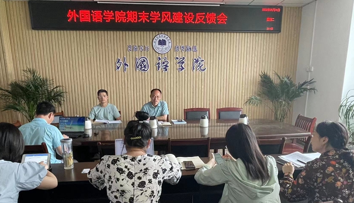 为全面贯彻落实党和国家关于高等教育高质量发展的重要方针政策,推进“三全育人”试点改革高校建设,提高适应新时代发展需要的高素质人才培养质量,着力营造“笃学 笃行 笃信”的学习风气,积极应对学生个性化成长诉求,分类指导服务大学生成人成长成才,促进我校地方应用型高水平大学建设和硕士点立项建设早日实现。外国语学院积极贯彻落实《关于开展2021-2022学年第二学期期末学风建设暨指导服务大学生成长活动通知》精神,于5月30日下午在逸夫楼A318会议室召开学风建设自查总结会。会议由党委副书记张亚锋主持,副书记(临时负责)郝景东作总结发言。