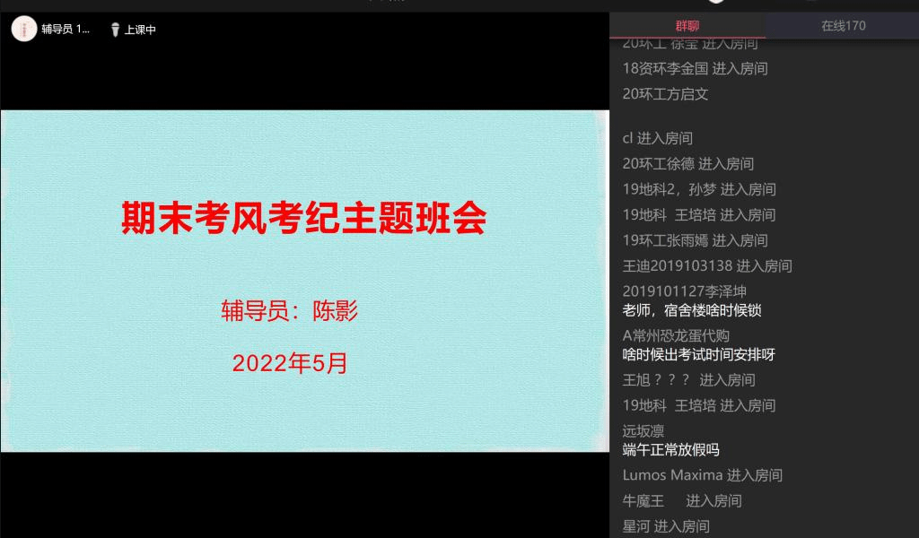 班会上,辅导员、班主任还对期末学生管理工作进行了布置,对于每周开展的核酸检测做到全员参与,不落一人,动员学生积极参加暑期社会实践,时刻紧绷安全这根弦,做好疫情防护、提高反电诈意识、注意交通安全、预防感冒发烧等,过一个充实有意义的暑期生活。