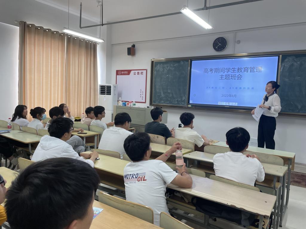 班会上,辅导员对高考期间学生教育管理工作进行部署安排,帮助学生提高遵纪守法、诚信考试意识,营造健康有序的考试环境,维护各项考试的公正性和严肃性,确保实现“平安高考”的目标。