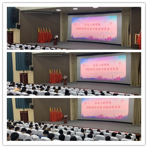 为拓宽本科生就业渠道,促进校企合作共建,提高我院本科生实践教学水平,2022年5月27日下午,信息工程学院在大学生活动中心召开2023届毕业生实习就业动员会,学院党委副书记余晓永(临时负责)、教学副院长潘正高、教学秘书徐旭、实习实训中心主任刘皖苏、学生事务管理科科长吴雨桐、19级辅导员以及学生参加了此次大会,会议由潘正高副院长主持。
