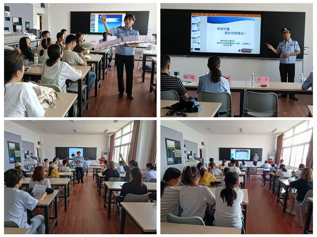 为深入学习贯彻习近平总书记关于打击治理电信网络诈骗犯罪工作的重要指示精神,依据《宿州学院关于开展防范电信网络诈骗宣传教育活动的通知》《宿州学院禁毒宣传主题班会课活动方案》相关要求,在《中华人民共和国网络安全法》实施五周年,《中华人民共和国禁毒法》实施十四周年之际,6月1日下午,在教学楼A601,文学与传媒学院邀请宿州市公安局校园安全教育宣讲团进校开展安全教育宣讲活动。市公安局禁毒支队副队长周利,市公安局刑警支队二大队教导员封涛,市公安局交警支队三大队副大队长、宣讲团具体负责人赵猛,市公安局禁毒支队二级警长徐溪,市公安局经侦支队三级警长徐斌,市公安局特警支队二级警长、宣讲团联络员刘强应邀宣讲,文学与传媒学院党委书记杨文艺出席并讲话,活动由文学与传媒学院团委书记王磊主持。