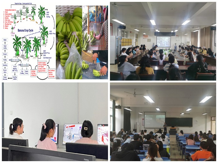 刘小阳老师带领学习了预制菜产业发展与产品研发,同学们了解了预制菜的定义、种类以及未来前景和趋势;张东京老师带领学生们线上参观了宿州市正新食品有限公司,使学生学习并了解了公司的理念、经营范围和公司主要产品的加工工艺流程等;鲍妮娜老师通过线上软件技术,模拟进入乳制品加工企业,带领学生们学习了巴氏杀菌乳、灭菌乳、酸牛乳等乳制品的加工工艺;陈琼老师带领学习了香蕉的种植、生产包装工艺,使学生了解了香蕉的种植过程,包装过程、运输过程以及香蕉的质量缺陷类型;董增和夏秋霞老师带领学生分别学习了司康的制作工艺以及速冻果蔬的制作工艺流程。