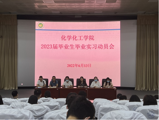 6月13日下午,化学化工学院在大学生活动中心召开2023届毕业生毕业实习动员会,化学化工学院党委副书记、院长卓馨、党委副书记(临时负责)史洪伟、副院长王聪、毕业班辅导员李颖、阚淑锦参加了此次会议。会议由实习实训中心主任张德谨主持。