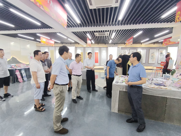 在展厅内,资源与土木工程学院党委书记张持堂带领全体党员干部参观了各式各样的廉政书画、篆刻、图片、实物等艺术作品。每幅作品都具有很强的思想性、艺术性和教育性。作品中既有反腐倡廉的书法绘画,也有地方特色的手工制品。大家驻足在一幅幅作品前,既感受到了艺术的熏陶,又接受了一次深刻的廉政宣传教育。大厅内的篆刻作品虽然朴实无华,却穹劲有力、涤荡心灵,传递出深厚的感情积淀。大家在不同的作品前驻足观赏,交流心得感想,既浸润了深厚的廉政文化底蕴,又接受了深刻的廉政文化宣传教育。