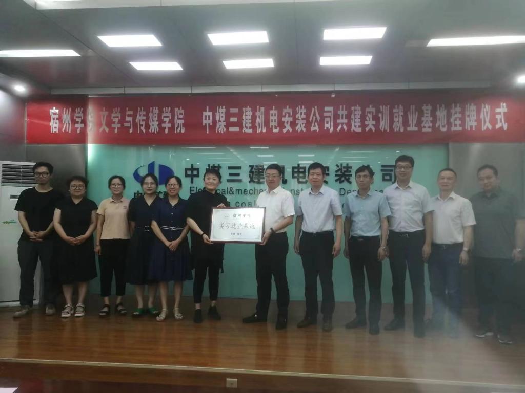文学与传媒学院与中煤三建机电安装公司签订了大学生实习就业基地协议书,举行了校企共建实习就业基地授牌仪式。