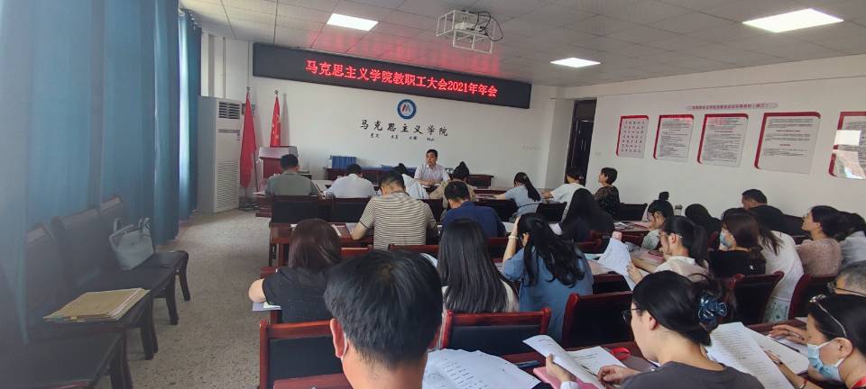 6月17日下午,马克思主义学院在学院会议室召开教职工大会2021年年会,与会人员听取和审议了学院党委书记、院长刘超代表学院所作的工作报告。
