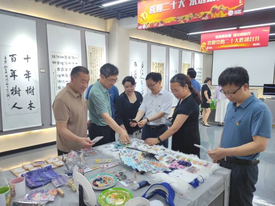 在展厅中,党员同志们认真观摩做工精美又富含地方特色的手工制品,驻足在以廉政箴言警句为内容的书法前,或拍照留念,或交流心得,陶醉在书画作品的“廉”之意境中。