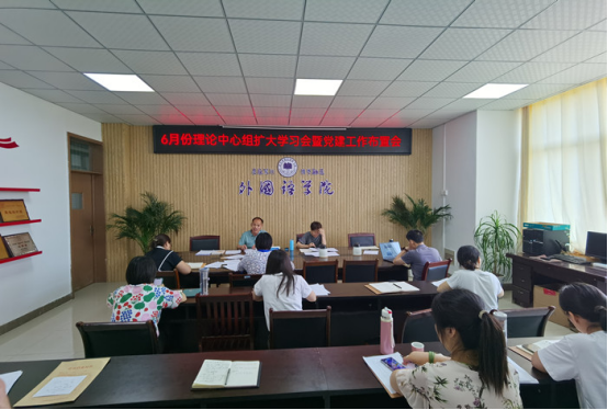 6月17日下午,外国语学院在逸夫楼A318会议室召开了党委理论学习中心组(扩大)学习会,学院党委委员、科级以上干部及教研室主任参加,会议由党委书副书记(临时负责)郝景东主持。