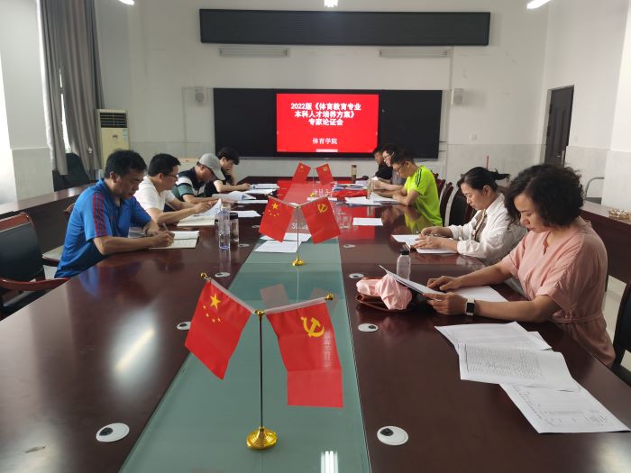 为继续贯彻落实新时代全国高等学校本科教育工作会议精神,落实学校人才培养总体要求,切实提升体育学院体育教育专业本科人才培养质量,2022年6月29日上午,体育学院在会议室A104召开2022版体育教育专业本科人才培养方案专家论证会,体育学院党委书记李高,体育学院党委副书记、院长白明,教学副院长陈芳芳,教学秘书刘海龙,体育教育教研室主任徐光辉以及体育学院教学委员会全体成员参加,会议由陈芳芳主持。