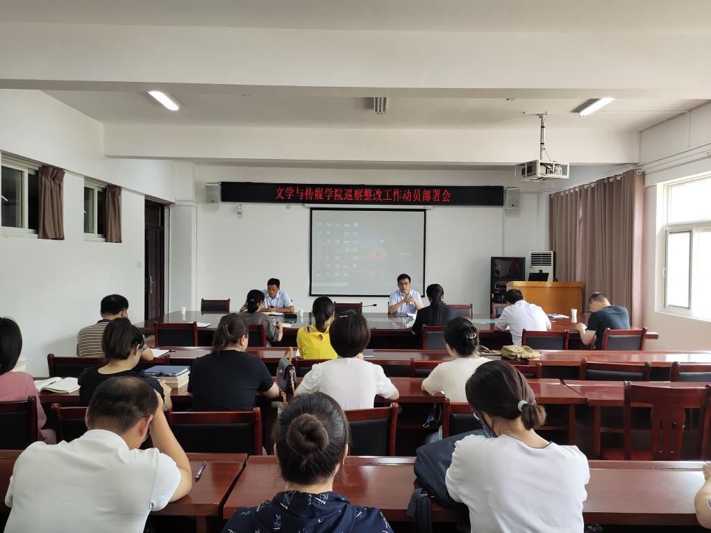7月11日上午,在校党委第一巡察组巡察情况反馈会后,文学与传媒学院立即在303会议室召开了学院巡察整改工作动员部署会。学院党委书记杨文艺、院长张德岁、党委副书记、纪委书记刘影、副院长李娟、满建、教研室主任、教师支部书记、科级干部及在校教职工参加了会议。