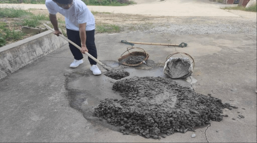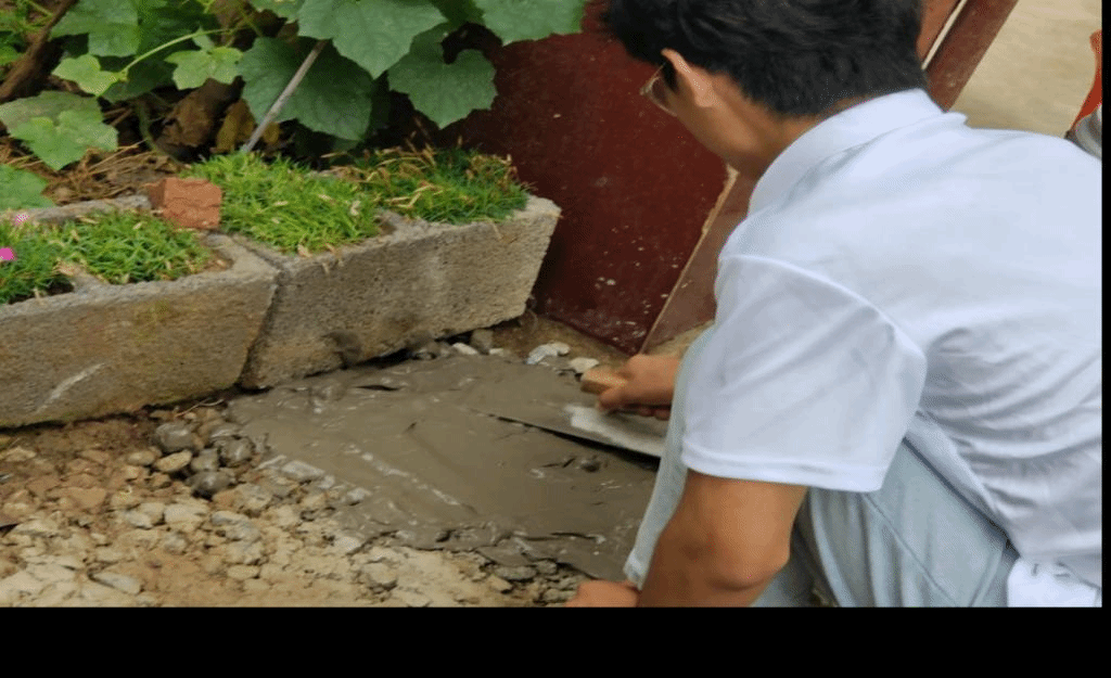 实践团队成员积极与村干部交流协调,在得到村民的同意后,队员们携带水泥及相关工具,分工合作,齐力配合,对乡村道路、墙面裂缝进行修补工作。成员结合专业知识,将水泥灰和水搅拌成水泥砂浆,然后将其填充在地面及墙面的裂缝之中。队员们连续几天的辛勤工作,让原本参差不齐的墙面、地面裂缝得到了完好修复,极大地改善了居民的生活环境,也让队员们的服务工作暂且告一段落。