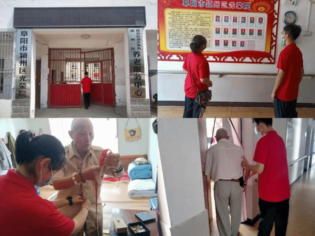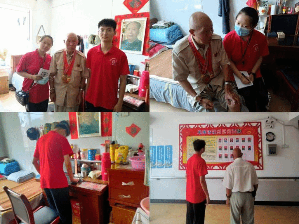 8月1日是中国人民解放军建军95周年,宿州学院大学生暑期“三下乡”红色记忆寻访行动实践小分队赴阜阳市颍州区光荣院开展“传承红色旗帜慰问退役老兵寻访抗战记忆”暑期社会实践活动。