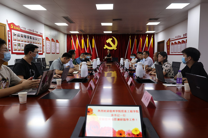 为加强校企合作,巩固访企拓岗行动成果,信息工程学院党委副书记余晓永(临时负责)、组织员(副处级)黄永刚、实习实训室主任刘皖苏、王超老师、辅导员吴雨桐于8月15日一同前往中国电信宿州分公司、宿州宿腾高科智能科技有限责任公司开展就业实习基地走访工作。