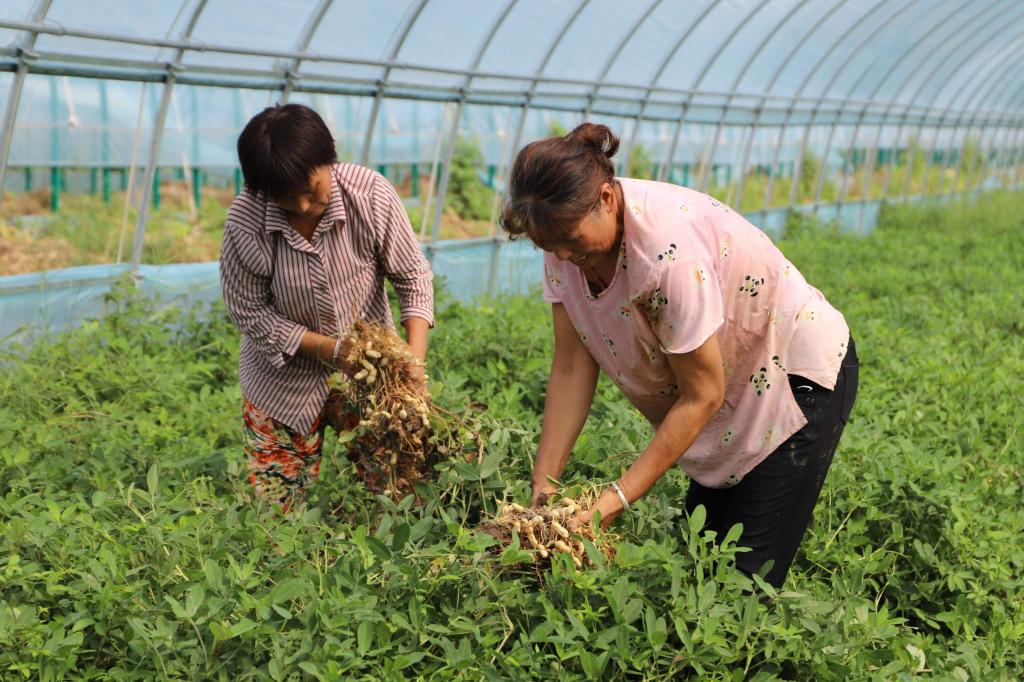 院外是村里的羊肚菌基地,玉米郁郁葱葱,不同种类的蔬菜瓜果挂满枝头,静静流淌的小河边有为游客垂钓用的钓鱼台。花生到了收获的季节,采摘的阿姨们脸上洋溢着幸福的微笑。今年通过先进技术的支持和“互联网+农业”的模式解决了农产品的销路问题。