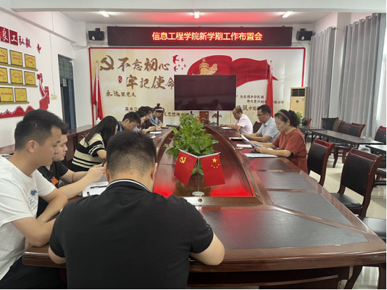2022年8月27日上午,信息工程学院在工B315会议室召开新学期第一次学生工作例会。会议由信息工程学院党委副书记(临时负责)余晓永主持,信息工程学院党委副书记、纪委书记吴孝银、信息工程学院组织员(副处级)黄永刚和全体辅导员(班主任)参加了会议。
