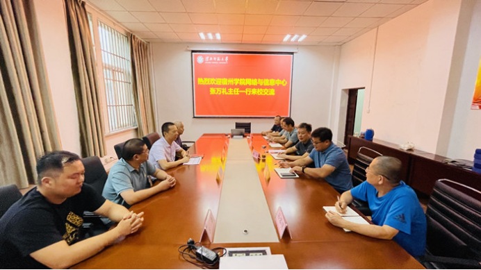 校园网有线无线融合建设、智慧校园综合服务平台建设情况介绍讨论后,与淮北师大办公室副主任李永胜在公车管理、公务招待、固定资产管理等方面也进行了深入交流学习。