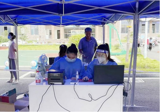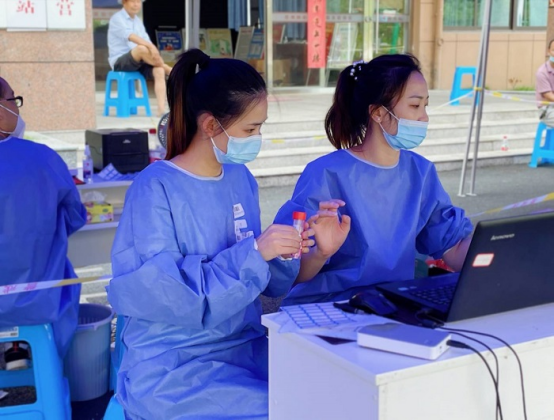 在突发疫情的各地,体育学院学生党员挺身而出、英勇奋斗、扎实工作,坚定站在疫情防控第一线,积极投身区域核酸检测、社区人员登记、消杀、小区门岗等疫情防控志愿服务工作,在炎热的夏日中身穿防护服认真的扫码、查码、消毒、核对登记信息,以认真的工作态度和热情的服务状态获得了当地的好评。