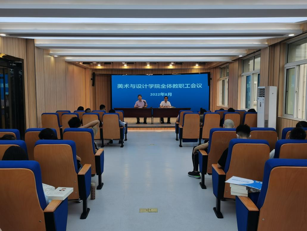 8月27日下午,美术与设计学院在会议室召开全体教职工会议,会议由党委书记陈述立同志主持,全体教职工参加会议。