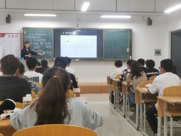 督导组第二节听了李闪闪老师的《编译原理》课程。李老师讲解了编译程序概论中,编译程序的工作过程。板书与PPT结合教学,讲解细致,用代码引入分析,学生容易理解,教学效果良好。