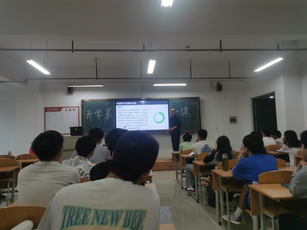 督导组上午第一节听了张海宁博士的《人工智能导论》课程。张老师第一节给学生讲解了本课程课程内容、学时分配、参考教材、软件安装及考核要求。让学生初步了解人工智能导论这门课,课堂上学生听课认真,师生状态良好。