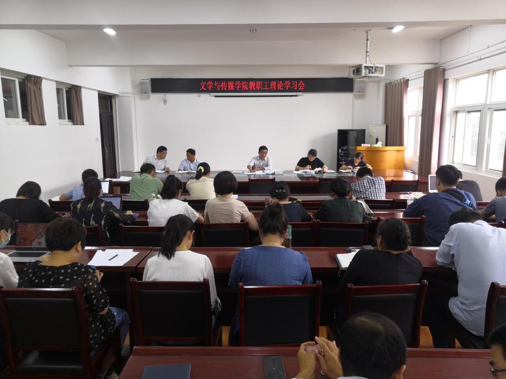 8月31日下午,文学与传媒学院在教A303召开全体教职工理论学习会,学院领导班子及全体教职工参加学习会,学习会由学院党委书记杨文艺主持。