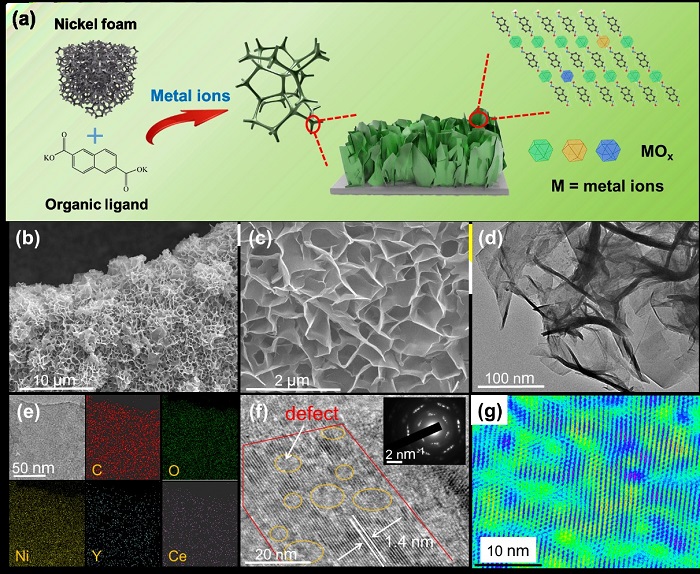 该研究介绍了双稀土元素Y, Ce共掺杂Ni-MOF电极材料的可控合成及其在电解水中的应用。此成果是以泡沫镍为载体合成MOF后再进行双稀土元素的可控掺杂,制备出具有高稳定性和低槽电压的电解水电极材料,研究成果为稀土元素的利用、多元素共掺杂提供了新方法和新思路。该项成果的取得,体现我院引进高层次人才的科研水平和实力,提高了学校的学术影响力,也为学校“两个建成”发挥一定作用。