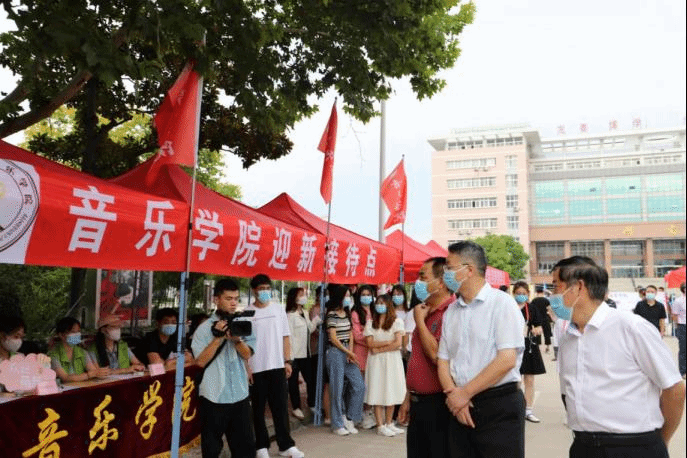 秋风送爽,开学迎新,又是一年新生季,音乐学院全体师生翘首期待着2022级新同学的到来。音乐学院党委副书记(临时负责)徐强,党委副书记、院长王善虎,党委副书记、纪委书记李小娜,副院长钦媛,各年级辅导员以及志愿者们早早来到迎新点,共同迎接新同学。