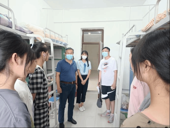 在迎新现场,徐强、王善虎在现场与报到新生亲切交谈,了解新生诉求。志愿者们细致耐心的服务与诚挚的热情使新生深切的感受到了学院大家庭的温暖。在新生报到后,学院领导来到新生宿舍看望新生,与同学们进行亲切地交谈,叮嘱同学们要努力营造温馨融洽的宿舍氛围,在望他们把握好自己的学习生活,在学校度过一段快乐的求学时光,将来都能学有所成。