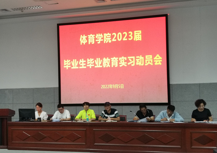 为深入贯彻落实安徽省教育厅相关文件精神,按照《宿州学院专业实习工作管理办法》和《宿州学院教育实习工作管理办法》等文件规定。进一步提升体育学院人才培养水平和就业质量,帮助毕业生提前掌握就业形势,提升毕业生实习就业水平。体育学院于9月5日在体育馆报告厅B112举行2023届毕业生毕业教育实习动员会。体育学院院长白明、副院长陈芳芳、实习实训中心主任张丽萍、休闲体育教研室主任张炳祥、大学体育教研室主任刘娟、体育教育教研室主任徐光辉、实习指导教师及2019级全体学生参加会议,毕业实习动员大会由张丽萍主持。