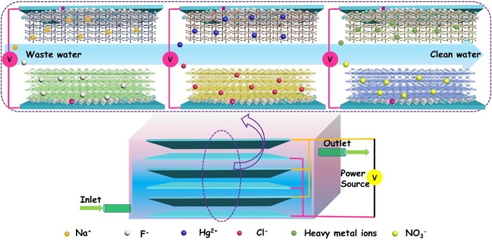 该项目通过相互串联的电容去离子体系,根据水体中各种阴阳离子的离子半径、电荷、电负性以及浓度的不同,为每一种离子都“量身定制”了一种高选择性电极材料,不仅可以将污水净化达到排放或者饮用水标准,而且还可以将每种离子都分离收集起来,增加经济效应。