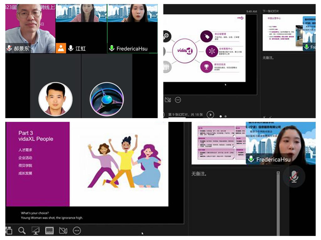 为落实教育部《开展全国高校书记校长访企拓岗促就业专项行动的通知》及省教育厅相关文件要求部署的具体举措,进一步做好疫情期间校企合作工作,9月16日上午,外国语学院与荷贝(宁波)信息服务有限公司召开了线上人才对接合作交流,希望通过此次交流,校企双方建立更加深入的合作关系,一方面为企业输送高技能人才,另一方面全力以赴为2023届毕业生提供优质岗位。外国语学院就业工作领导小组成员与荷贝(宁波)信息服务有限公司亚洲运营中心人事总监俞晓军、亚洲运营中心招聘经理徐晴出席对接会。