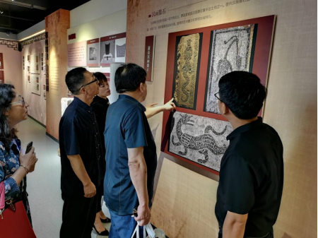刘辉先生首先对我院的热情接待表示感谢,对我院的发展及实验室建设给予高度评价;随后,刘辉先生对萧县汉画像石的传承与发展做了详细介绍,然后对汉画像石进入高校美术类课程的价值和与会教师展开了深刻的讨论。他提出拓片包含了丰富的信息,能够反映某个时期的历史文化、社会发展、人文事件、名胜古迹等,是研究文物背后文化内涵的关键素材和重要参考史料。拓片传承的不仅是文物的图像,更把我们古老民族的思想精髓记录了下来。因此,我们不但要保护好拓片文化本身,也要传承拓片文化所蕴含的精神。最后,在美术与设计学院党委书记陈述立同志及院长许兴海同志的陪同下,刘辉先生参观了美术与设计学院展厅、实训室及皖北文化艺术馆。