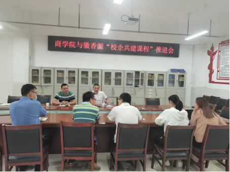 为加大校企合作力度,提升专业内涵,在课程共建上加大校企资源共享力度,推动产教融合。2022年9月20日上午,在实训楼B507会议室,商学院与安徽徽香源食品有限公司召开了校企共建课程建设会,就即将开设的《连锁经营管理》共建课程进行了交流会谈,徽香源连锁经营部经理马飞、营销部经理张海涛、商学院党委副书记、副院长(临时负责)刘红军、营销与物流教研室部分教师参加了推进会。