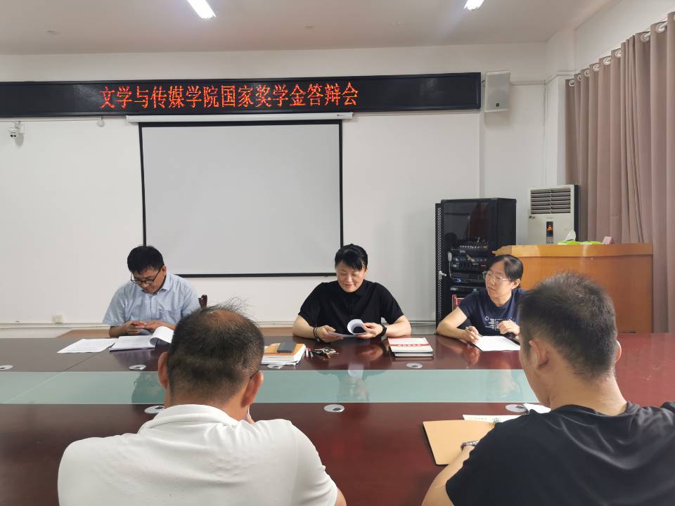 为切实做好2021-2022学年度国家奖学金评审推荐工作,9月20日下午两点,文学与传媒学院于教学楼A303召开2022年国家奖学金答辩会。党委书记杨文艺,党委副书记、纪委书记刘影,副院长李娟,全体辅导员及八名申请人参与了此次评选。