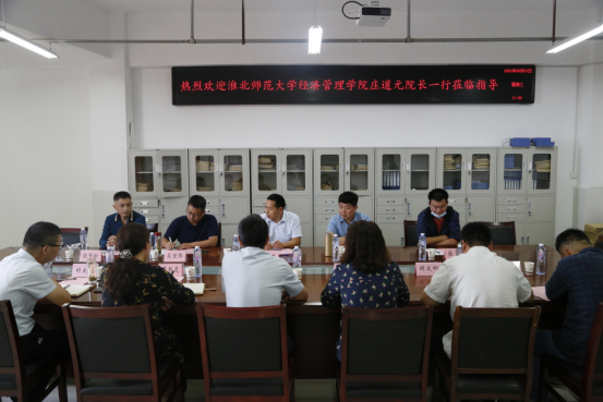 庄道元对商学院的热情接待表示感谢,对宿州学院电子商务专业成功获批国家一流专业表示祝贺,对商学院在校企合作方面的做法表示赞赏。尤其是与京东的校企深度合作,得到淮北师范大学一行的高度评价。庄道元介绍了淮北师范大学经济与管理学院的基本情况,对其专业建设尤其是物流管理国家一流专业的建设情况做了交流分享。