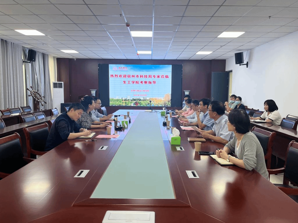 2022年9月22日下午,宿州市科技局副局长王慧、科长周军洋等一行3人,到生工学院考察调研2022年市科技计划项目申报工作。校科技处处长林永,科技处副处长张冰秋,生工学院党委书记赵亮,党委副书记、院长张兴桃,副院长翟科峰及项目主持人及团队成员参加了本次调研汇报会。