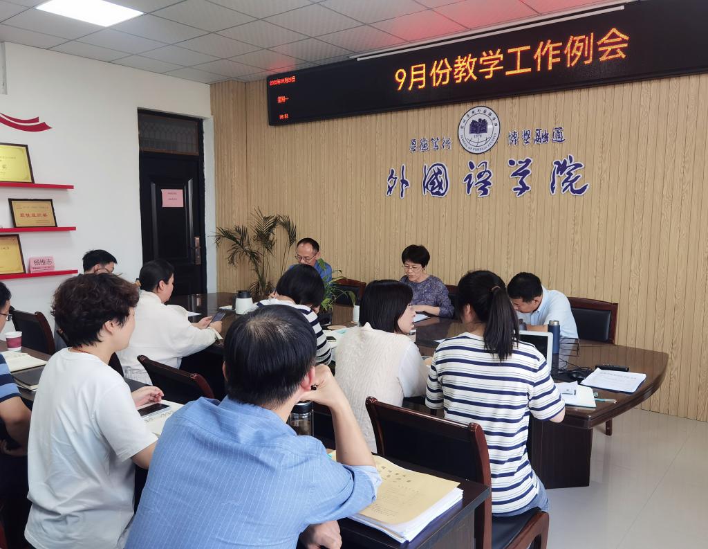 9月26日下午,外国语学院在逸夫楼A318召开了9月份教学工作例会,会议由外国语学院院长张雁凌主持,各教研室主任和教学管理人员参会。