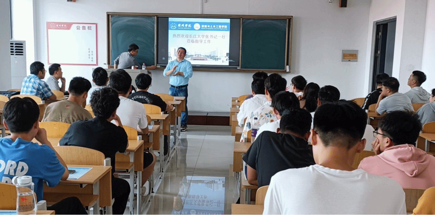 为加强学院研究生联合培养,应资源与土木工程学院邀请,长江大学资源与环境学院党委书记张科、水文与环境系主任王现勋等一行于9月26日到我校进行访问交流,资源与土木工程学院副院长王明梁、相关教师及八十余位19级毕业生参加交流会。首先,王明梁对长江大学资源与环境学院一行的到来表示热烈欢迎,强调了联合培养研究生对学院发展的重要性,同时从个人发展的角度鼓励各位同学继续深造。