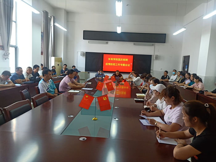 为全面传达贯彻宿州学院疫情防控工作精神,进一步压实体育学院疫情防控工作,保障师生员工度过一个平安祥和的国庆假期,9月29日体育学院召开疫情防控工作专题会,会议由党委书记李高主持,体育学院全体教职工参加。