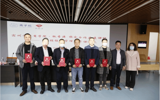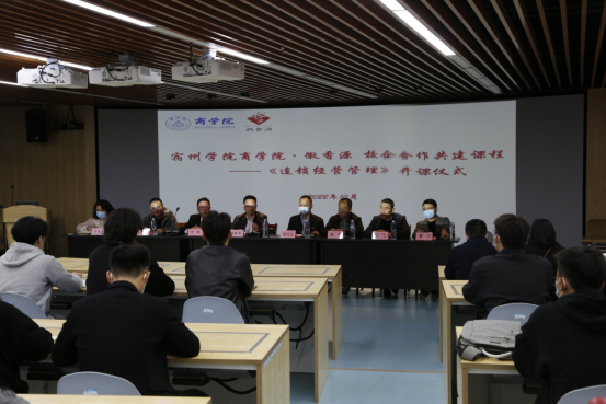 为加大校企合作力度,提升专业内涵,商学院与宿州市徽香源有限公司在课程共建上加大资源共享力度,共建《连锁经营管理》课程,推动产教深度融合。该课程以课程组的形式进行授课,由宿州徽香源食品有限公司董事长吴向东担任组长,宿州徽香源食品有限公司供应链运营总监程迎九、销售总监余俊、财务经理田中、运营计划部经理张海涛、连锁经理马飞、新媒体运营经理董川及商学院吴雪博士任课程组成员,课程组成员根据岗位专业进行分模块授课,共同探索校企深度融合的教学改革新模式。共建内容围绕开设形式、开设内容以及配套课件、案例、教材的选用,以及如何充分利用学校层面扎实的基础理论知识与企业层面丰富的实战经验,让学生既能掌握理论知识,学以致用,提高学生学习兴趣等多方面展开。