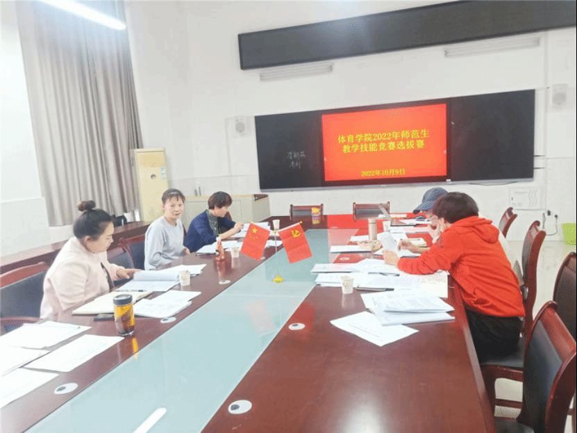 为深入学习贯彻习近平总书记关于教育的重要论述,根据学校《关于举办2022年宿州学院师范生教学技能竞赛的通知》(教务处赛字〔2022〕31号)要求,创新师范生培养模式,强化师范生的教育实践,体育学院于2022年10月9日中午十二点,在A104会议室,举办2022年师范生教学技能竞赛选拔赛。此次选拔赛的评审委员小组由院长白明担任组长,副院长陈芳芳担任副组长,王瑞芳、李茹、张炳祥、刘娟、徐光辉、刘海龙、薛子慧8位老师作为评审专家。