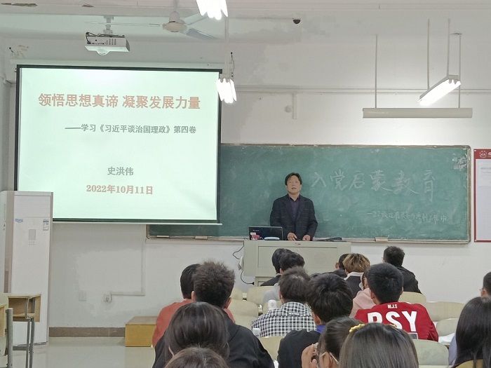为切实做好2022级新生政治引导和入党启蒙教育工作,提高新生的思想政治觉悟与理论政策水平,10月上旬,化学化工学院党员领导干部为2022级全体新生班级上党课。