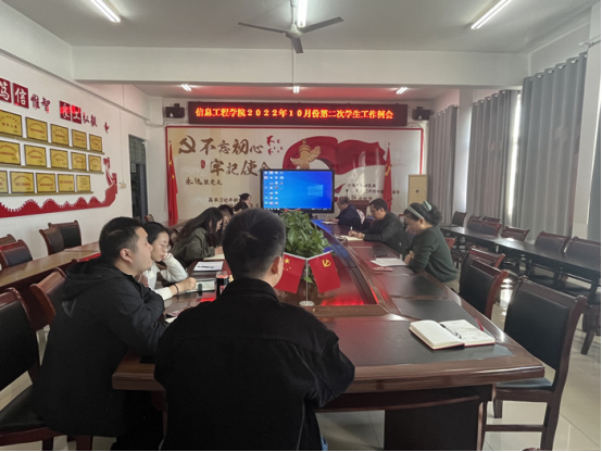 2022年10月18日上午,信息工程学院在工B315会议室召开10月份第二次学生工作例会。会议由信息工程学院党委副书记(临时负责)余晓永主持,信息工程学院党委副书记、纪委书记吴孝银、信息工程学院组织员(副处级)黄永刚和全体辅导员(班主任)参加了会议。