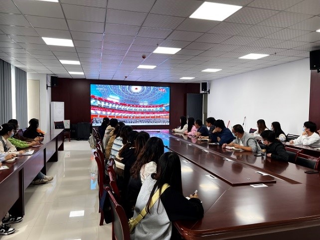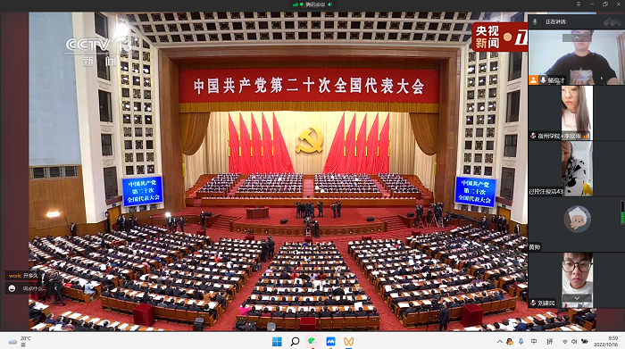 中国共产党第二十次全国代表大会于10月16日上午10时在北京人民大会堂隆重开幕,化学化工学院党委组织全体师生集中收看党的二十大开幕会盛况。部分教师和学生代表在实训楼A1013会议室集体收看电视直播,学生以班级为集体在教室共同观看了网络直播,校外实习学生通过线上会议同步观看。