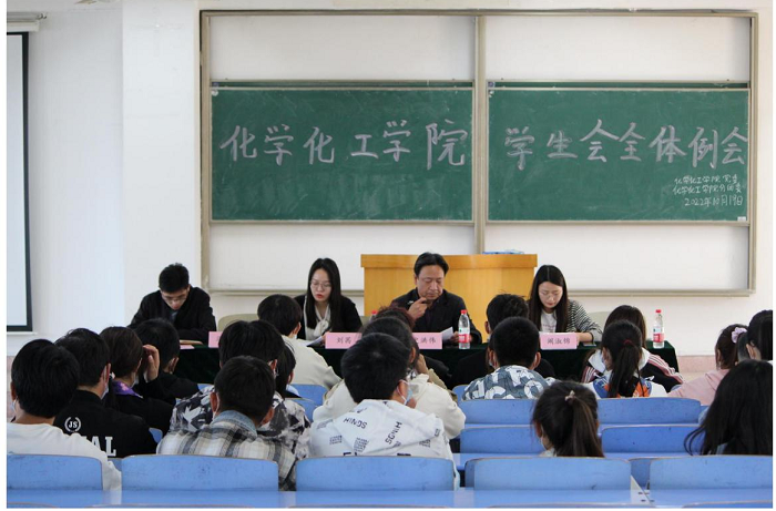 10月19日中午,化学化工学院在教学楼东B201召开学生会全体大会。党委副书记(临时负责)史洪伟、团委书记(代理)阚淑锦、新生辅导员马明文以及学生会全体成员参加。会议由党委副书记刘茜主持。
