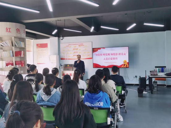 为深入贯彻习近平新时代中国特色社会主义思想,进一步端正学生入党动机,10月19日,在党的二十大胜利召开之际,外国语学院在学生公寓党建服务站为22级新生举办了“知党情 明党规 知党恩 跟党走”为主题的入党启蒙教育活动。此次活动邀请外国语学院党委副书记(临时负责)郝景东、组织员黄伟、分团委书记赵婷婷、学生支部书记余阳、组织部党校办秘书张海涛参加了此次活动,活动由黄伟、赵婷婷、共同主持。