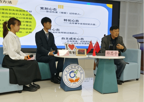 “执著、成长、快乐”是郑思亭老师的座右铭。他鼓励当代青年学子要乘风破浪、百炼成钢,不负青春韶华,健康成长成才。郑老师在花甲之年仍坚持学习的人生态度,激励着在场的每一位同学。
