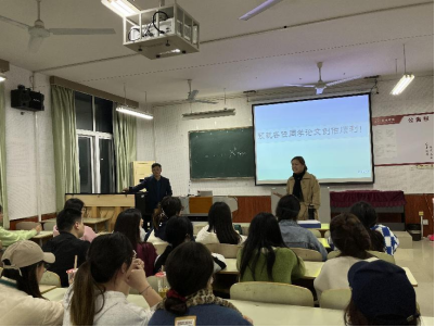 随后,全体与会人员聆听了由学前教育教研室牵头组织的论文开题报告辅导的主题讲座,由学院教师吴枝兵副教授主讲。吴老师从开题报告摘要以及关键词的撰写,论文框架的规划、资料的搜索等几个方面对毕业论文开题报告的写作进行了详细介绍和指导,内容丰富,极富启发性,受到同学们的热烈好评。讲座结束后,学前教育专业教研室主任发表了热情洋溢的讲话,为同学们加油鼓劲。最后,同学们就关心的问题与老师进行了交流。