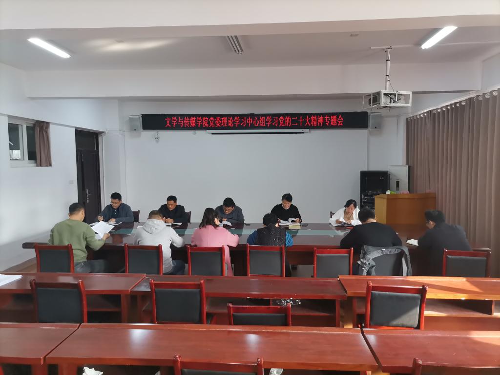 11月1日下午,文学与传媒学院在教学楼A303室召开党委理论学习中心组(扩大)学习会,专题学习党的二十大精神。中心组成员、科级干部及各党支部书记参加学习会,学习会由党委书记杨文艺主持。